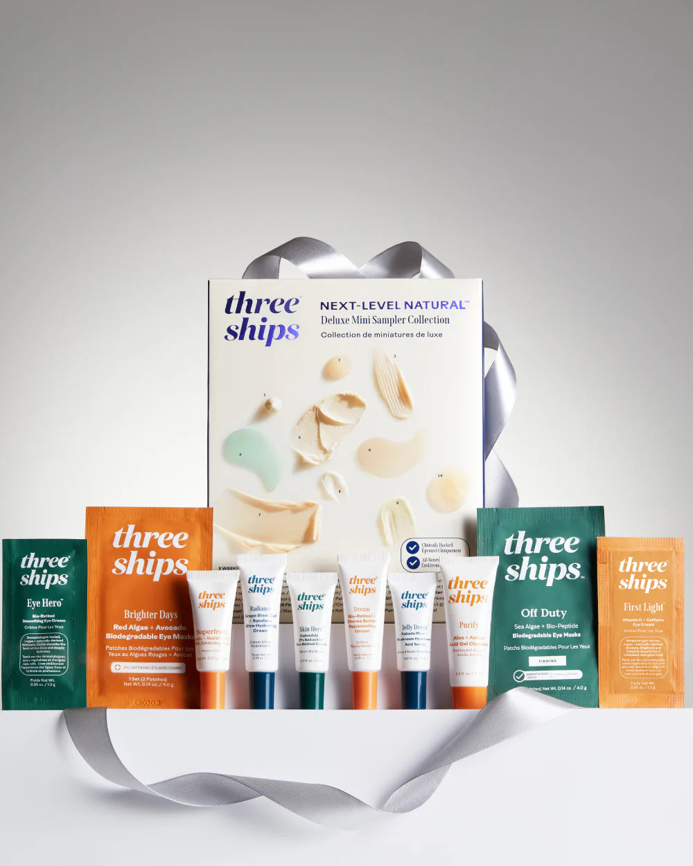 Navigate natural with confidence. Try the best of Three Ships with this dermatologist-tested, all-natural collection of best-selling deluxe minis and samples.